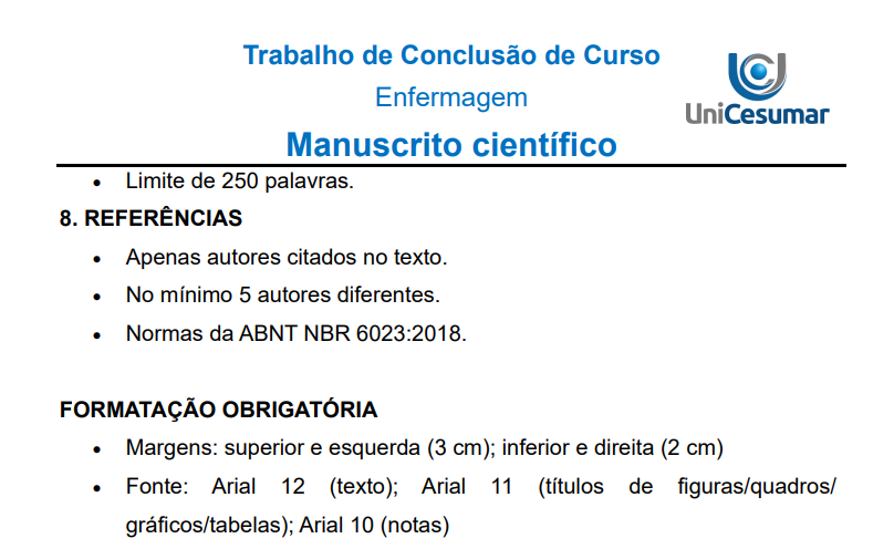 Trabalho de Conclusão de CursoEnfermagemManuscrito científicoMANUAL DE ORIENTAÇÕES PARA PESQUISA E PRODUÇÃODO TCCOBJETIVO DO MANUALEste manual tem como finalidade orientar