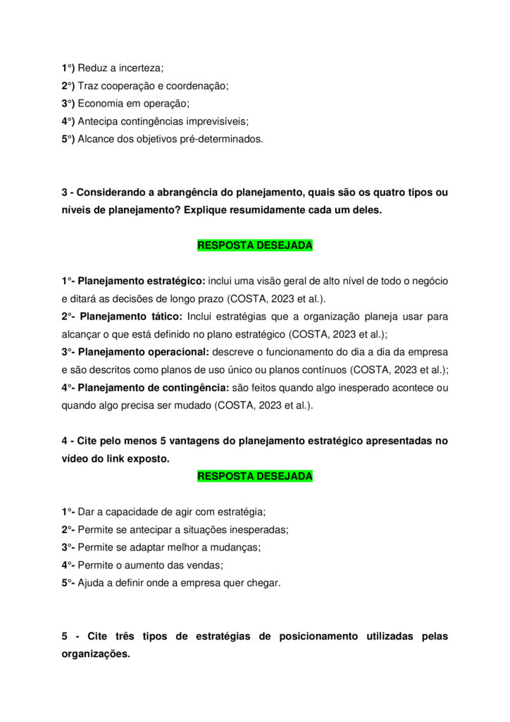 4 – Cite pelo menos 5 vantagens do planejamento estratégico apresentadas no vídeo do link exposto.