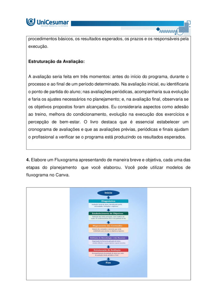 4. Elabore um Fluxograma apresentando de maneira breve e objetiva, cada uma das etapas do planejamento que você elaborou. Você pode utilizar modelos de fluxograma no Canva.