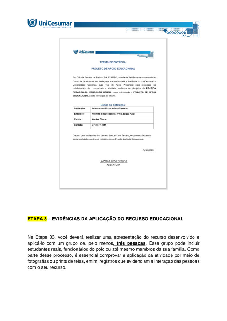 ETAPA 1 – PROJETO DE APOIO EDUCACIONAL E O TEXTO DISSERTATIVO