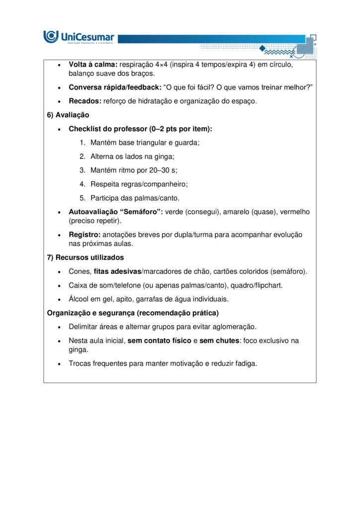 • Registro: anotações breves por dupla/turma para acompanhar evolução nas próximas aulas.
