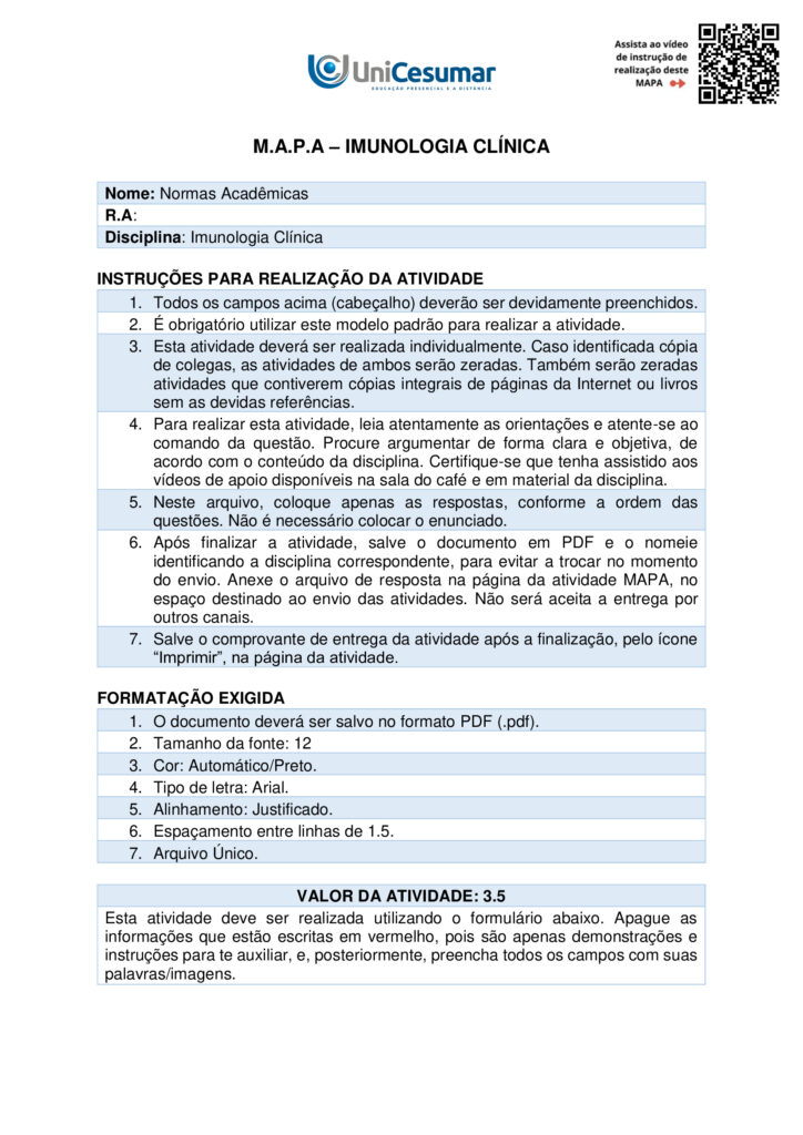 A realização do item 2 desta atividade será realizada durante a prática de Imunologia Clínica – Reação de Floculação, prevista para ocorrer na semana 6 do módulo 52 (09-14 de junho/2025), medianteagendamento prévio em seu Studeo.