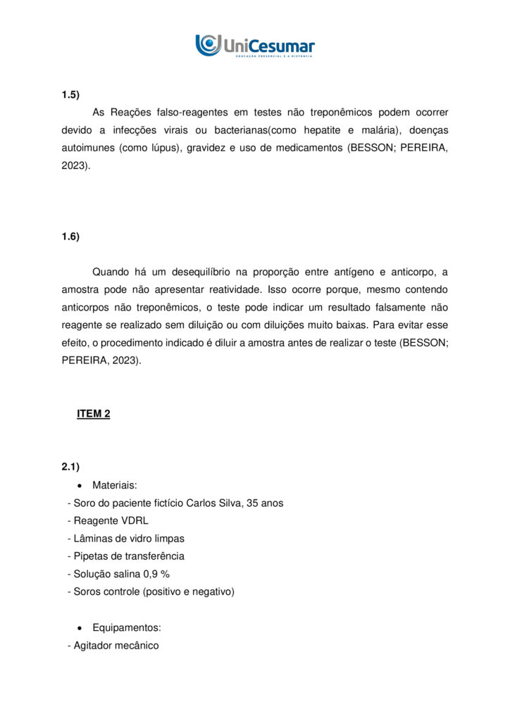 1.5) EXPLANE por que podem ocorrer reações falso-reagentes em testes não treponêmicos para sífilis.