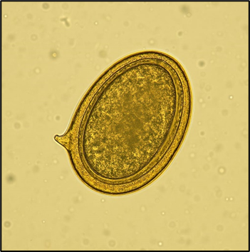 2.2 ANEXE uma foto do campo microscópico em objetiva de 40x, mostrando o ovo de S. mansoni com a presença do espículo lateral.