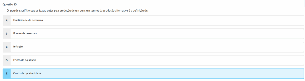 Gabarito: Letra E — Custo de oportunidade